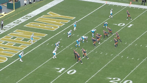 Having just seen the concept unfold moments earlier, the Panthers easily handled the play, resulting in a 5-yard loss and forcing a fourth-and-8.