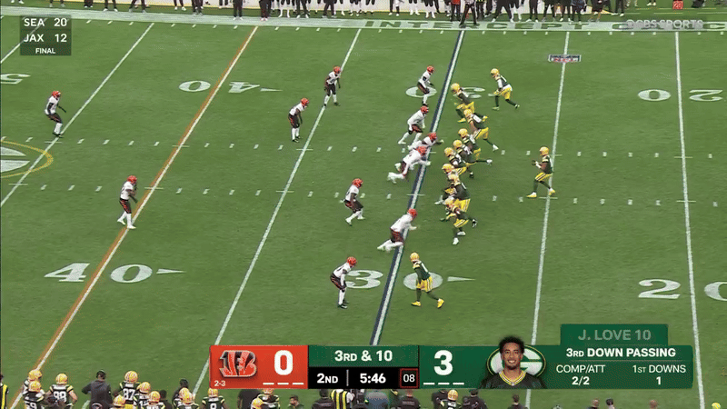 Earlier in the game, Golden converted a key 3rd-and-10 on an absolute dot from Love. With all the chances the Packers are giving Golden to be a vertical threat, he was bound to hit some, and he’s now overdue to turn one of these into a touchdown.