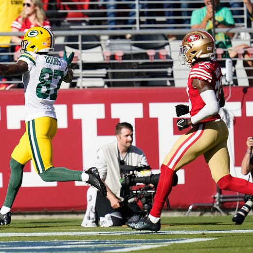 As for whether Love has shown enough for the Packers to feel confident starting him, the answer remains murky. He still misplaces a few too many throws, including a few on Friday. In particular, Love's touchdown to Romeo Doubs should have gone to the receiver's back shoulder, not high and inside where the defender could have conceivably made a play. That Doubs successfully adjusted to secure the catch doesn't undercut the mistake.