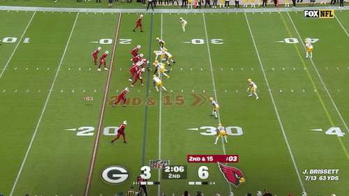 On first down, Parsons beat right tackle Jonah Williams cleanly for a sack. The play pushed the Cardinals back to the Green Bay 35-yard line and forced them to use their second-to-last timeout.